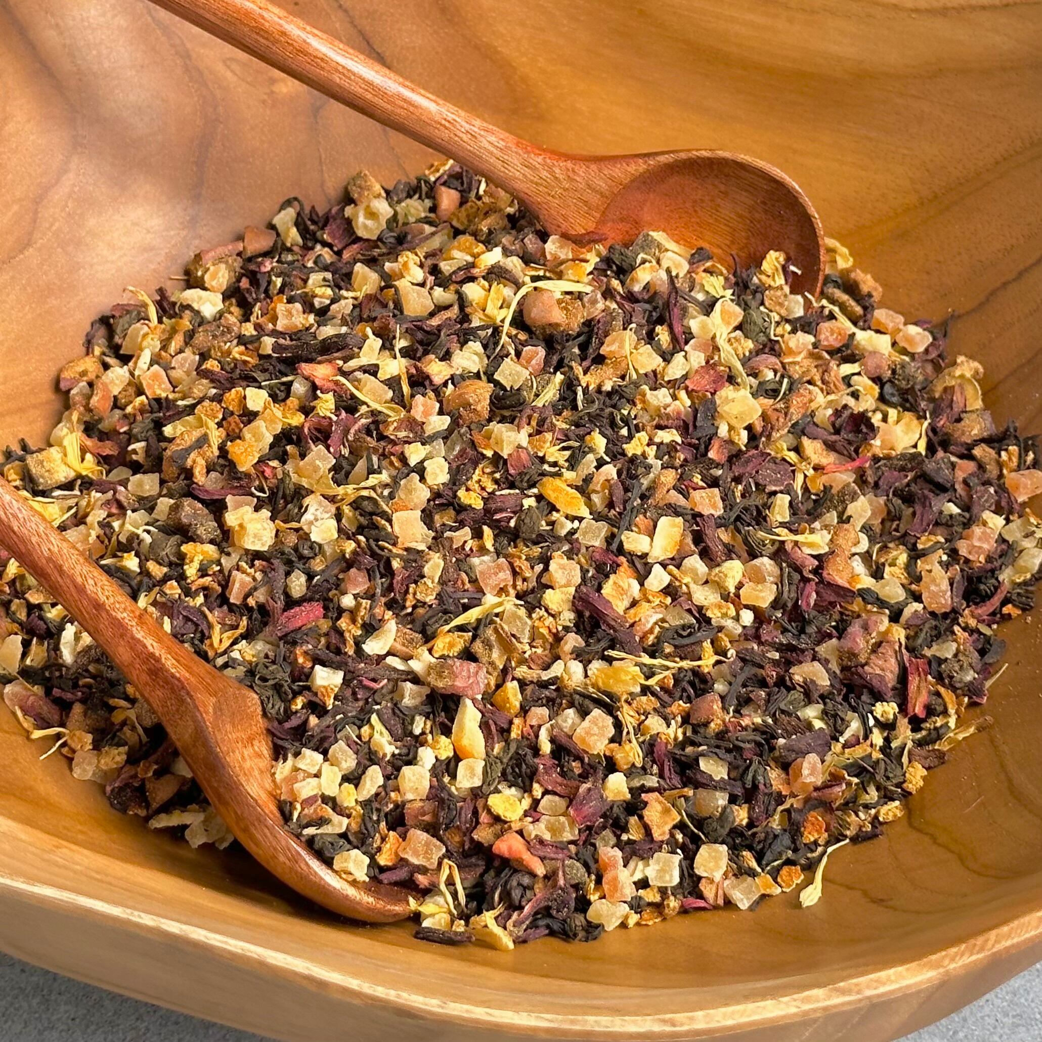 マンゴ、オレンジ、アップル、ハイビスカスのフルーティーな味わいが楽しめる豪華なビタミンティーMango tango。